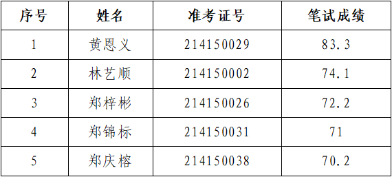 福建龙溪轴承(集团)股份有限公司2021年第一次公开招聘笔试工作于2021年4月15日顺利结束,笔试成绩在报名系统均可查询。根据《福建龙溪轴承(集团)股份有限公司2021年第一次公开招聘公告》要求,笔试合格分数线为70分。现将通过笔试入围面试人员名单公示如下: