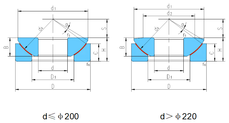 d | D | B | C | H | dk | S | d1 max | d2 | D1 min | rs,r1s min | α˚ ≈ | 动载荷 Dynamic | 静载荷 Static | ||