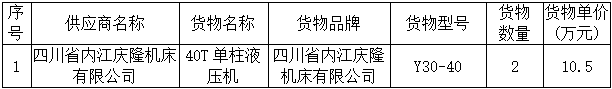 黄金甲体育集团40T单柱液压机采购与安装中标公告