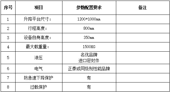 7、所提供的产品需符合液压升降平台行业标准、安全标准的相关要求。