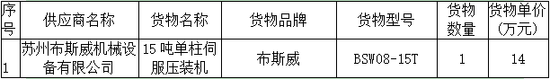 黄金甲体育集团15吨单柱伺服压装机采购与安装中标公告