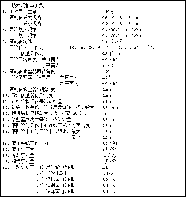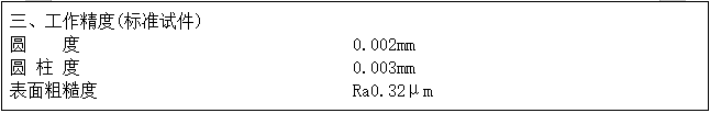 设备验收时,根据实际生产情况,双方协商选用其它产品型号作为验收型号,以产品磨削精度来验证设备加工精度,及对“主要技术参数”中的内容进行验收