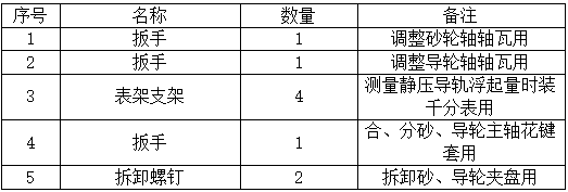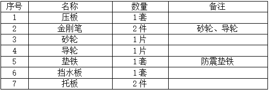 纵进给托架(磨φ5~φ80mm)、砂轮吊钩、冷却装置、专用工具各一套