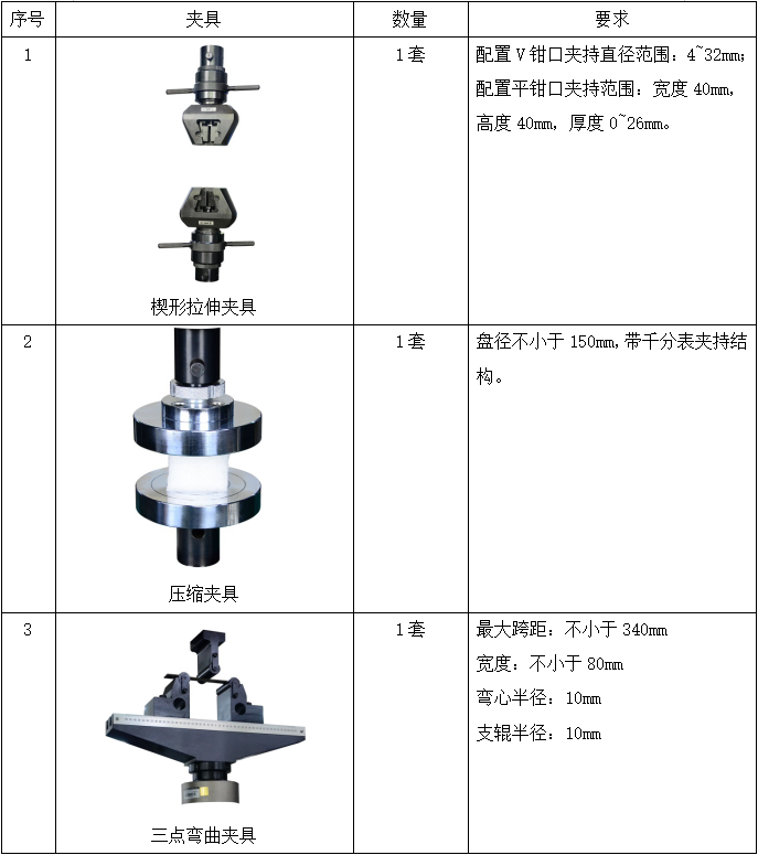 (3) 设备能够按照标准 GB/T 228.1-2021、ASTM E8/E8M-2016a、GB/T 7314-2010、GB/T 232-2010开展拉伸试验、压缩试验、弯曲试验,且有相关内置程序,并按标准要求配齐相应的夹持工装。