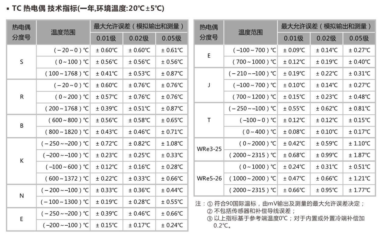 1.1.3 适配热电偶(至少包括:K/N/S等分度),热电阻(Pt100)等传感器。