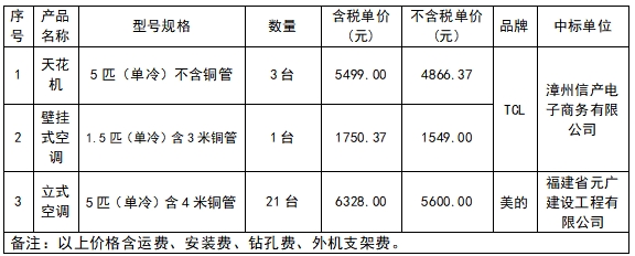 黄金甲体育集团采购空调中标公告