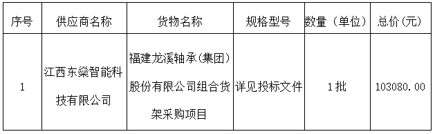 二、项目名称:福建龙溪轴承(集团)股份有限公司组合货架采购项目