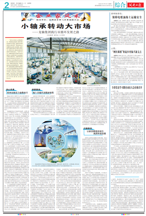 “求木之长者,必固其根本。”福建龙溪轴承(集团)股份有限公司把“坚持和加强党的全面领导”贯彻到企业发展的全过程、各领域,始终践行国际国内市场双向发力,苦练内功、抢抓机遇占领国际市场制高点,“双师”并行、拓展配套培育国内市场增长点,成果丰硕,先后荣获全国文明单位、全国首批制造业单项冠军示范企业、全国首批工业品牌培育示范企业、全国模范劳动关系和谐企业、福建省质量奖、中国创新力企业百强等称号。2020年,黄金甲体育集团克服新冠疫情及中美贸易摩擦导致市场需求大幅下降的不利影响,危中寻机、化危为机,实现逆势增长,营业收入同比增长22.45%,创历史新高,归属母公司净利润同比增长99.51%。