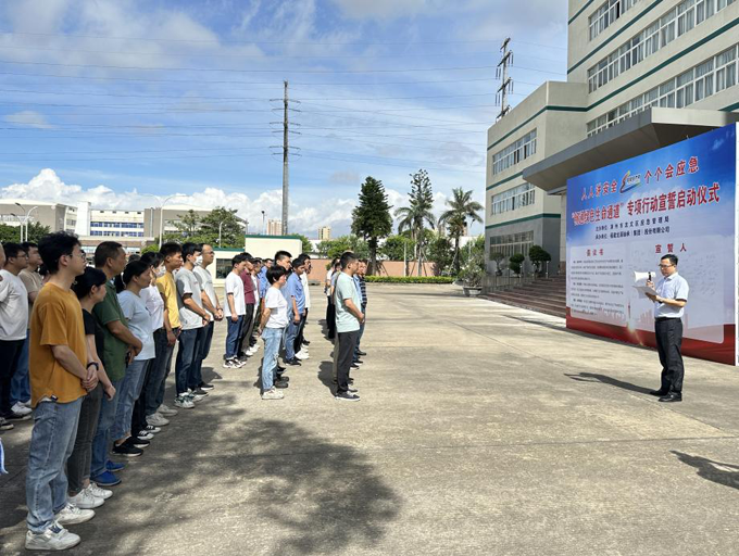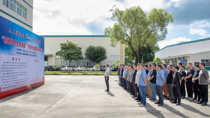 2023年6月30日,黄金甲体育集团开展“畅通绿色生命通道”专项行动宣誓仪式暨灭火和应急疏散预案演练活动。此次活动由公司与漳州市龙文区应急管理局联合举办。公司党委副书记、总经理陈志雄、党委委员、副总经理张逸青出席,各部室、车间代表参加活动。