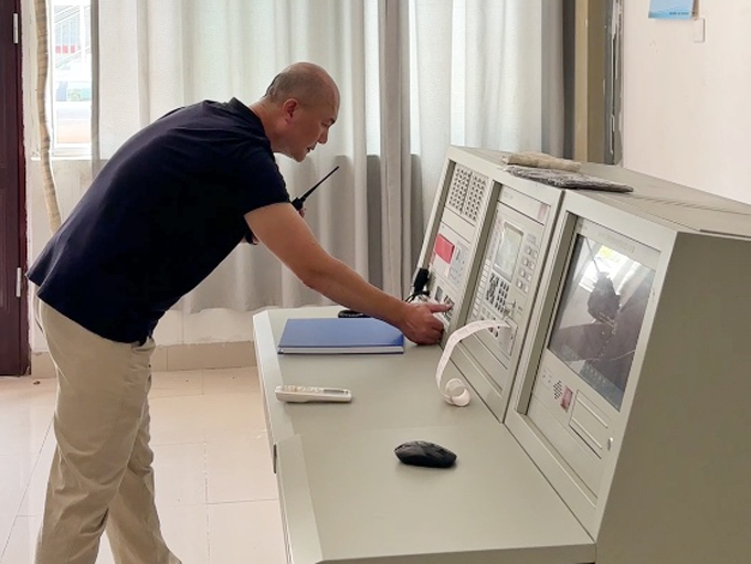 ▲值班人员接警并确认火情后,立即启动消防广播,发出疏散指令