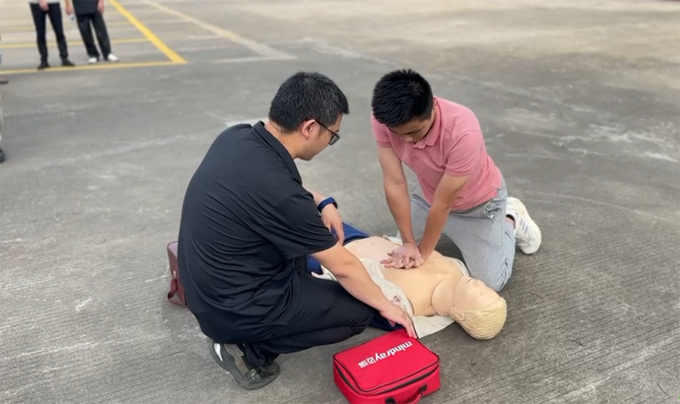 ▲救护组对受伤人员实施心肺复苏术