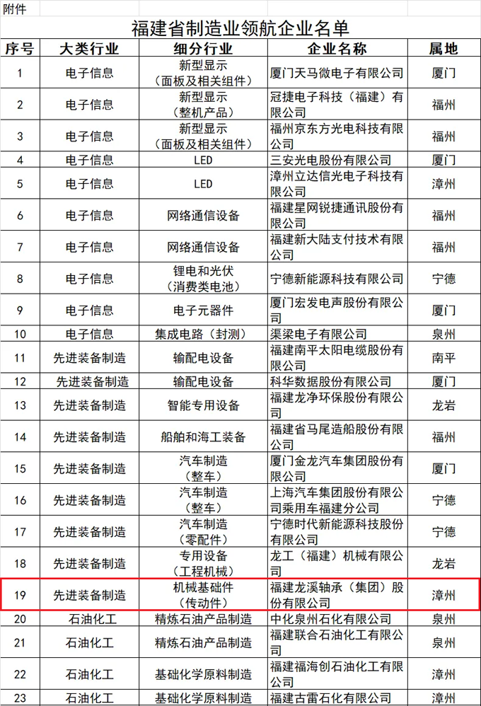 日前,福建省工信厅公布福建省制造业领航企业名单,黄金甲体育集团光荣入选。